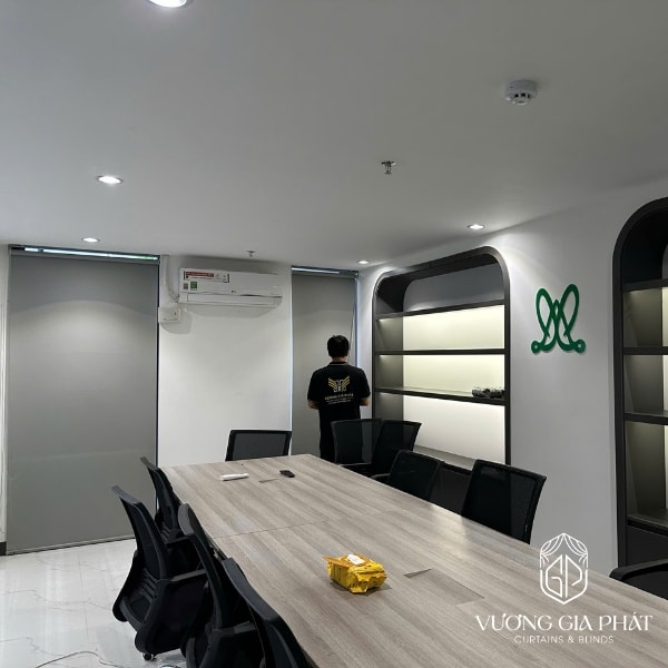Tùy loại vải. Với rèm cuốn sử dụng chất liệu blackout (100% cản sáng), hiệu quả chắn nắng gần như tuyệt đối – lý tưởng cho phòng họp hoặc khu vực cần riêng tư.