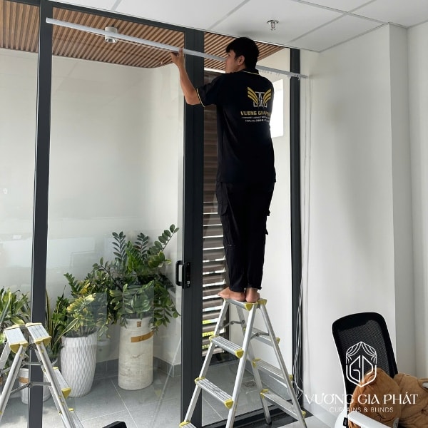 - Thi công lắp đặt: Tiến hành thi công trong giờ ngoài hành chính để không ảnh hưởng đến hoạt động của công ty. Lắp đặt hệ thống ray, trục cuốn và gắn rèm lên cửa kính theo tiêu chuẩn kỹ thuật. Vệ sinh sạch sẽ sau khi hoàn thành, đảm bảo môi trường làm việc gọn gàng.