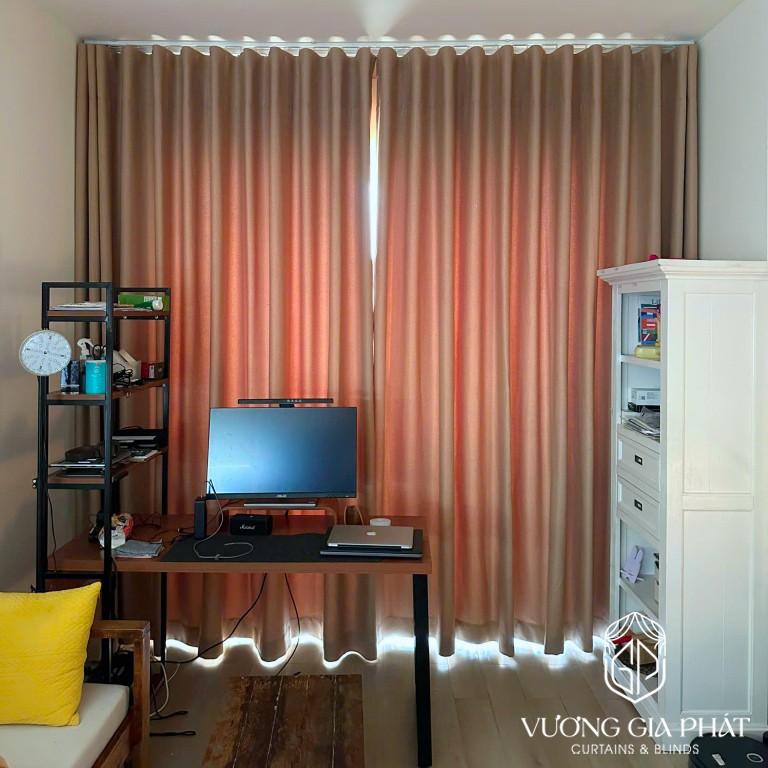 Loại rèm sử dụng: Rèm vải 2 lớp, gồm một lớp voan mỏng xuyên sáng kết hợp với lớp vải dày chống nắng. Tạo nên sự linh hoạt trong điều chỉnh ánh sáng.