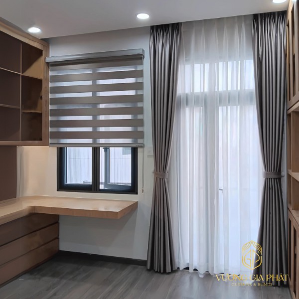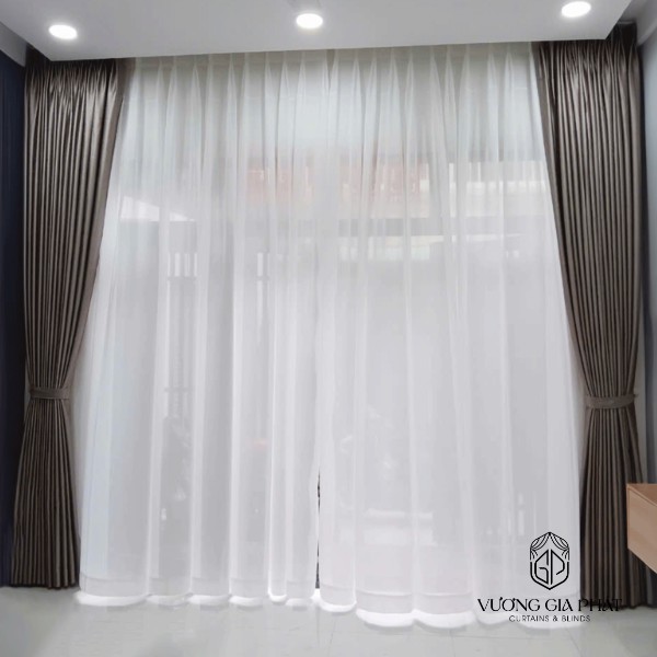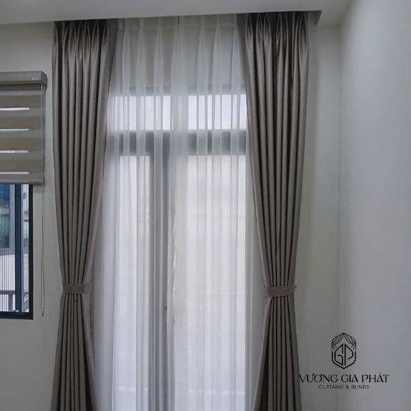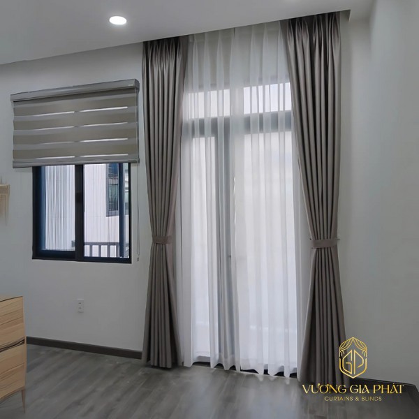 - Sự linh hoạt trong điều chỉnh ánh sáng và không gian: Ban ngày, khi không cần cản sáng hoàn toàn. Bạn có thể vén lớp vải dày và chỉ sử dụng lớp voan mỏng để đón ánh sáng tự nhiên dịu nhẹ. Tạo không gian thoáng đãng. Khi cần sự riêng tư hoặc muốn chắn ánh sáng mạnh, chỉ cần buông lớp vải dày.