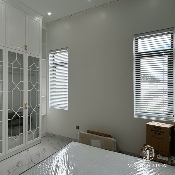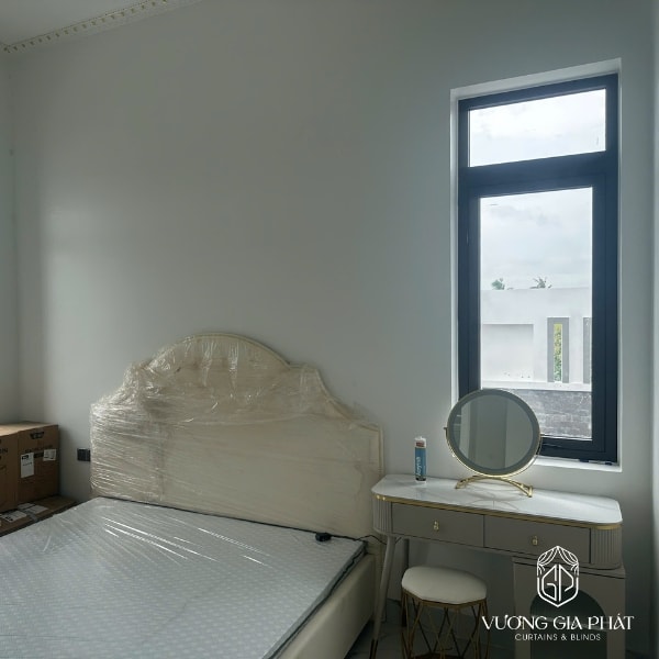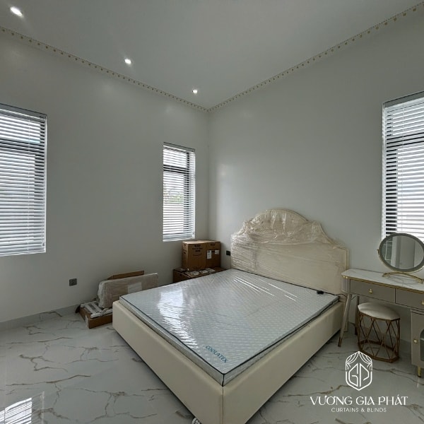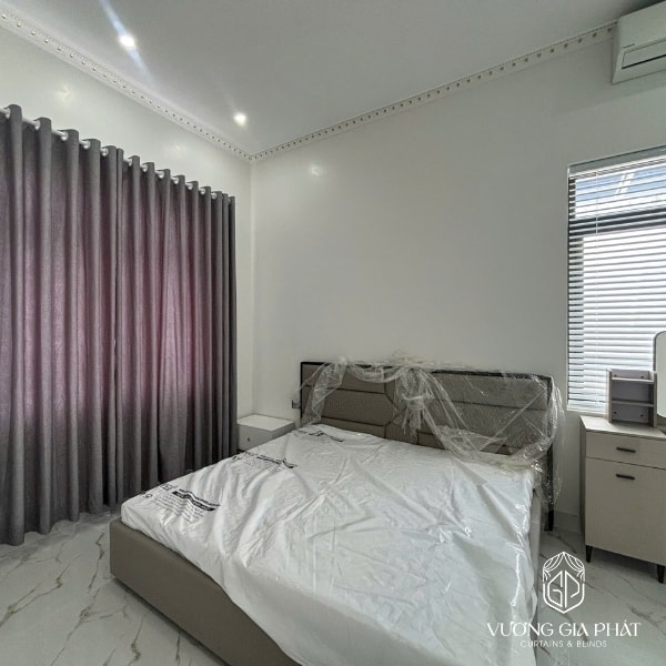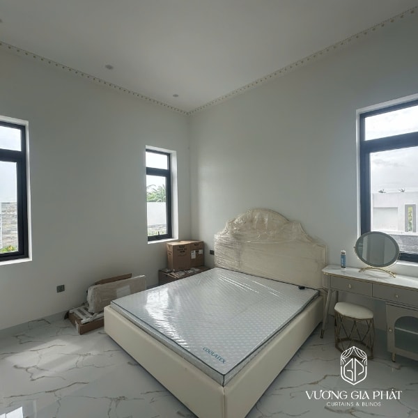 Giải pháp đưa ra: Kết hợp rèm vải 2 lớp cho phòng khách, rèm sáo nhôm cho phòng ngủ và phòng vệ sinh
