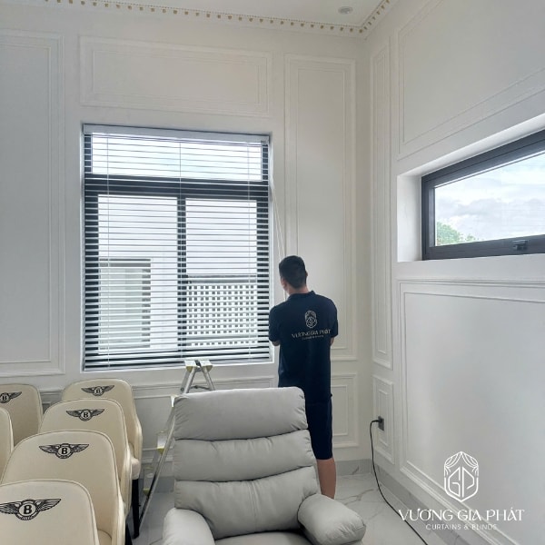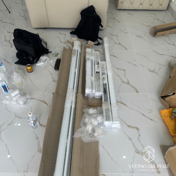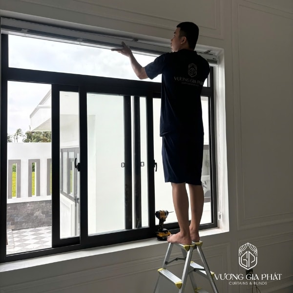 Thi công lắp đặt: Tiến hành khoan, bắt ray treo, đảm bảo chắc chắn và thẩm mỹ. Lắp rèm vải tại phòng khách, phòng ngủ. Lắp rèm sáo nhôm tại bếp và phòng làm việc. Kiểm tra độ trơn tru khi kéo, độ che sáng.