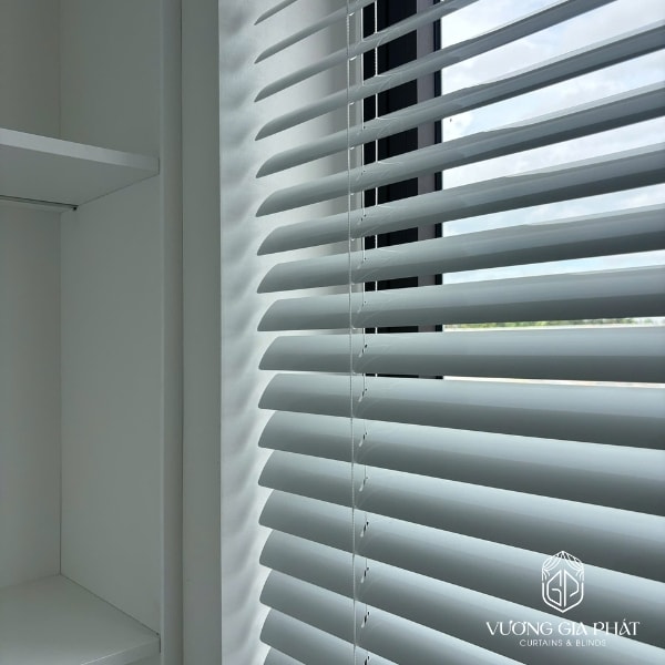 Rèm sáo nhôm: Thanh nhôm phủ sơn tĩnh điện, chống han gỉ. Gọn gàng, dễ vệ sinh, phù hợp khu vực bếp.
