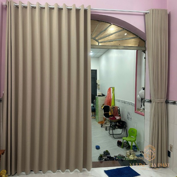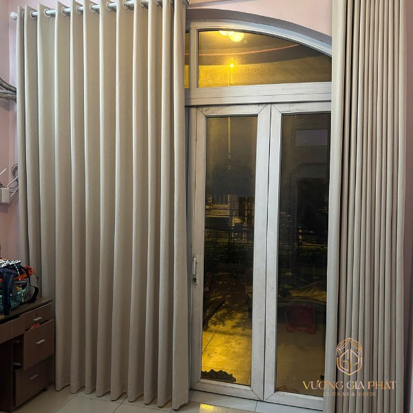 Vải rèm dày không chỉ ngăn sáng mà còn có tác dụng tiêu âm. Tại một nơi có mật độ xe cộ dày đặc như Quốc lộ 1A, bộ rèm vải 1 lớp đóng vai trò như một bức tường ngăn cách âm thanh. Giúp không gian bên trong nhà anh Phú luôn yên tĩnh, thư thái.