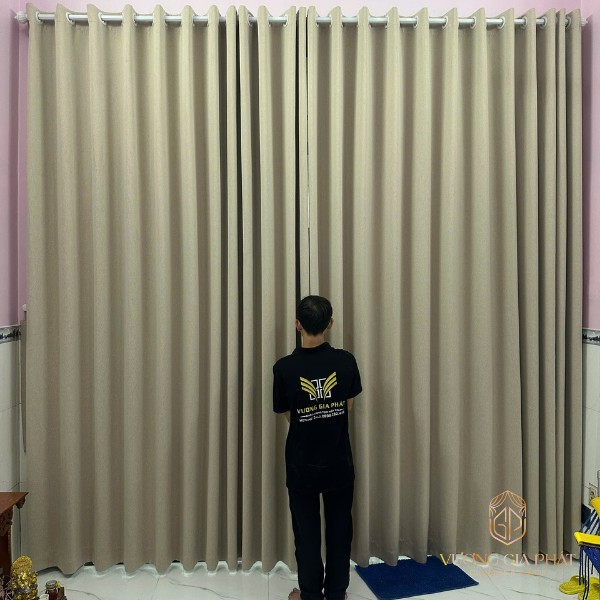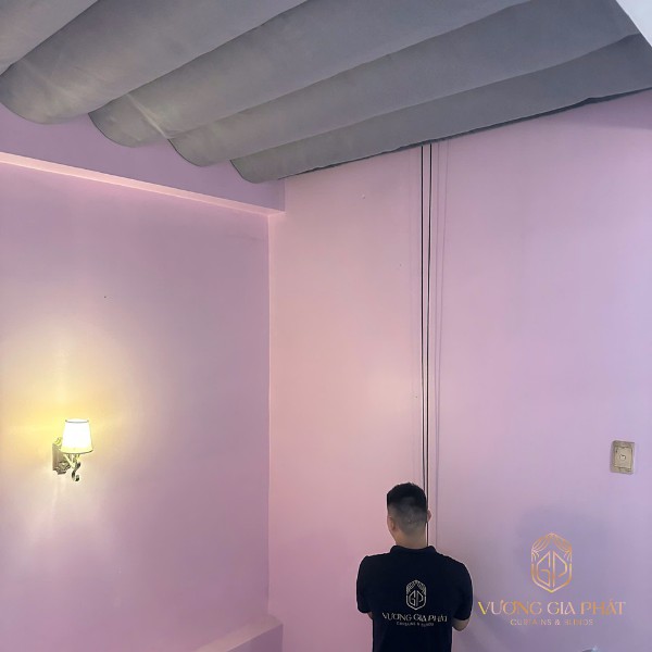 • Tư vấn mẫu vải: Anh Phú chọn tone màu xám ghi cho rèm vải để sạch sẽ và hiện đại, cùng rèm trần màu kem để giữ độ sáng cho không gian.