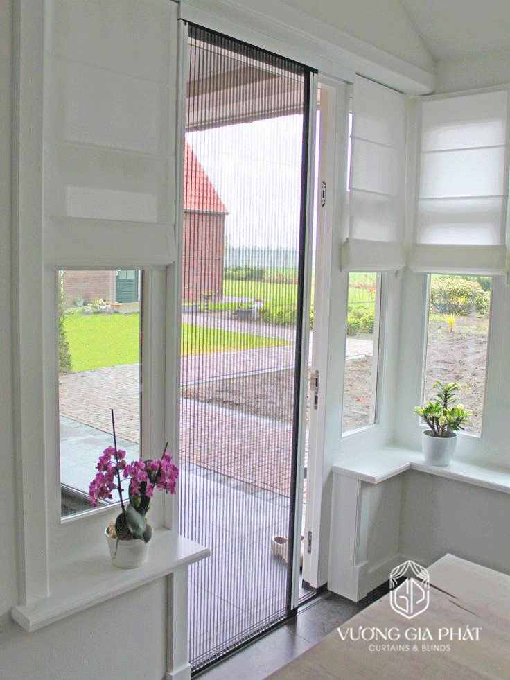 - Lưới chống muỗi xếp (dạng gấp nếp): Kéo ra thu vào dễ dàng như màn xếp. Lắp đặt ở cửa đi chính, cửa ban công, cửa sân thượng. Thẩm mỹ cao, sang trọng và tiện lợi.