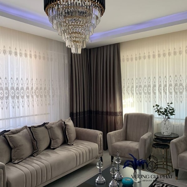 Chọn chất liệu theo từng phòng: Phòng khách voan phối vải nhung/tơ. Phòng ngủ vải cản sáng, rèm tự động. Bếp rèm roman hoặc rèm cầu vồng dễ vệ sinh