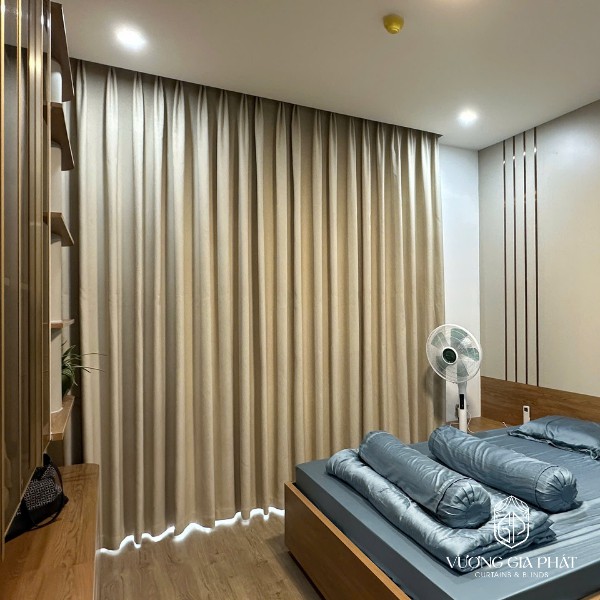 - Cơ chế chống nắng: Sử dụng vải Blackout (vải sợi dệt cao su non hoặc 100% Polyester mật độ cao). Thường dùng Rèm Vải 2 Lớp (một lớp vải dày + một lớp voan mỏng) để tối ưu cả chống nắng và thẩm mỹ. Cản sáng 100%, cách âm tốt, đa dạng kiểu dáng