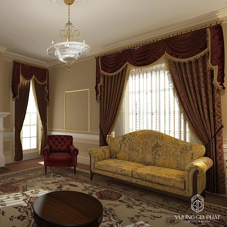 - Phòng Khách (Ưu tiên thẩm mỹ và linh hoạt): Chọn Rèm Vải 2 Lớp hoặc Rèm Cầu Vồng. Lớp voan dùng cho ban ngày để lấy sáng mềm mại.