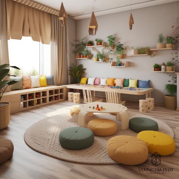 Rèm cửa không chỉ là vật dụng trang trí mà còn là yếu tố quan trọng giúp tạo nên môi trường học tập an toàn, thoải mái và thân thiện cho các bé mầm non. Tùy vào từng khu vực trong trường, bạn có thể lựa chọn rèm vải, rèm cuốn, rèm cầu vồng, rèm sáo nhôm, rèm lá dọc hoặc rèm nhựa PVC để tối ưu công năng.
