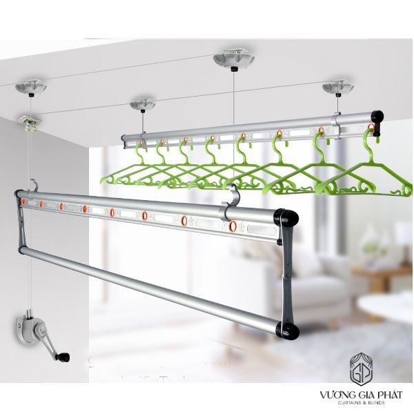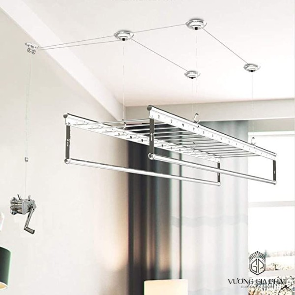 Là loại giàn phơi được cố định lên trần nhà, có thể nâng – hạ linh hoạt nhờ hệ thống ròng rọc hoặc điều khiển điện tử. Đây là giải pháp thay thế hoàn hảo cho các loại dây phơi truyền thống, mang lại sự tiện nghi, gọn gàng và hiện đại.