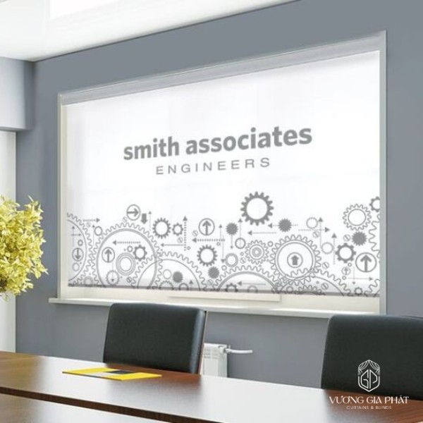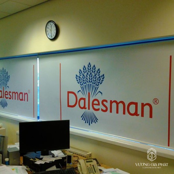 Rèm cuốn in logo được thiết kế riêng theo yêu cầu nhận diện thương hiệu của doanh nghiệp: