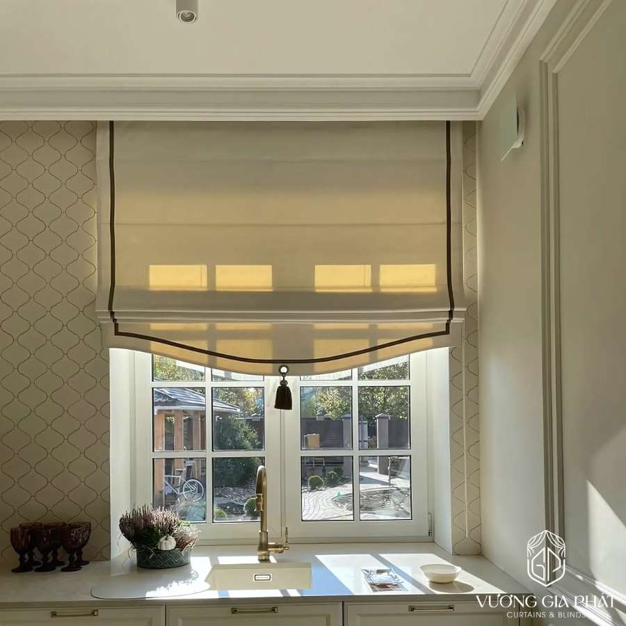 Với cửa sổ lớn, bạn có thể chọn rèm cuốn blackout hoặc rèm lưới. Với cửa sổ nhỏ, rèm cuốn Roman sẽ mang lại sự tinh tế hơn.