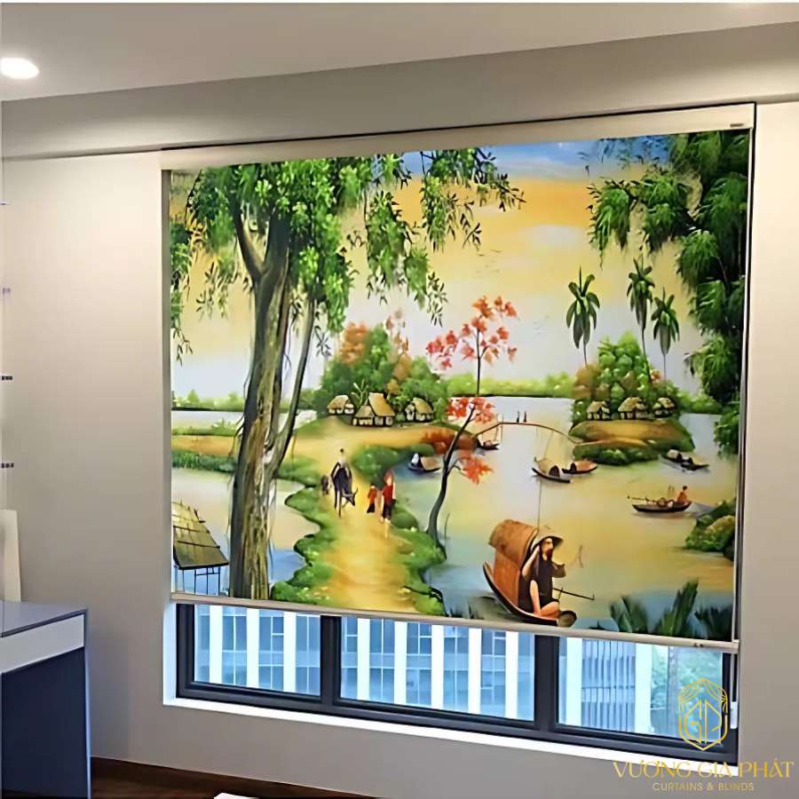 Là loại rèm có thể in tranh phong cảnh, logo doanh nghiệp, tăng tính thẩm mỹ và thể hiện dấu ấn thương hiệu. Đây là lựa chọn phổ biến tại các văn phòng sáng tạo hoặc showroom.