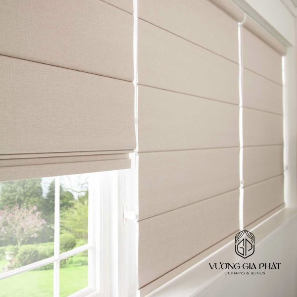 - Rèm Roman Chất Liệu Tổng Hợp: Được làm từ chất liệu tổng hợp như polyester phủ acrylic. Giúp chống thấm nước, chống bám bẩn, phù hợp cho không gian bếp có độ ẩm cao và dễ bị bám dầu mỡ.