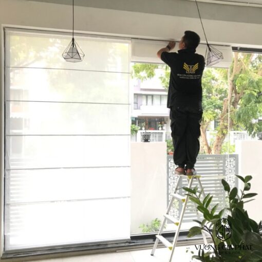 - Vận hành Xếp Lớp (Khi không sử dụng): Kéo dây/dây bi để thu rèm lên. Rèm sẽ tự động tạo thành các lớp gấp đẹp mắt, nằm gọn ở phía trên cửa sổ.
