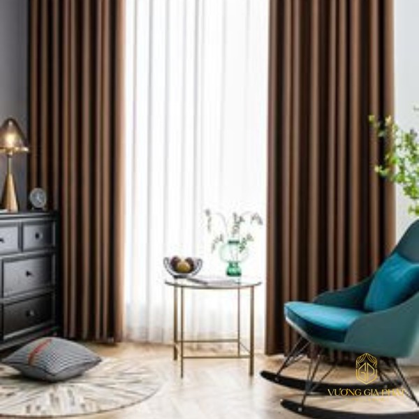 Màu nâu ấm áp của rèm vải 2 lớp không chỉ giúp không gian trở nên nhẹ nhàng, thư giãn. Mà còn rất dễ dàng phối hợp với các kiểu trang trí khác nhau. Màu sắc này phù hợp với mọi phong cách nội thất, từ hiện đại đến cổ điển.