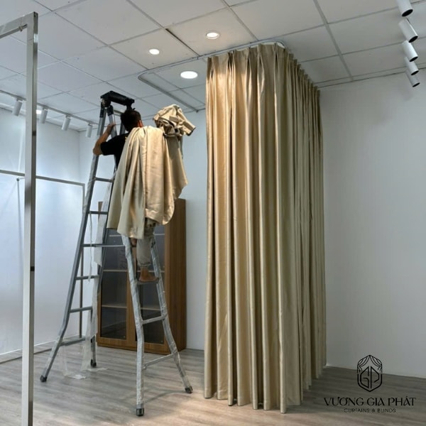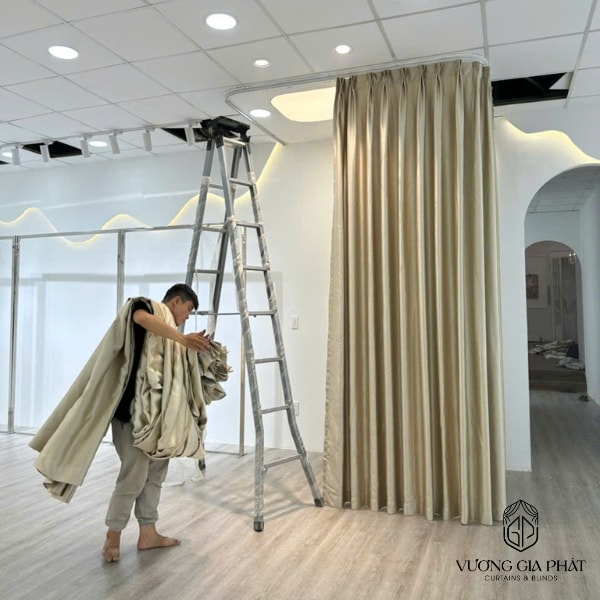 Treo rèm cách sàn khoảng 1–2cm để tạo độ rủ đẹp.