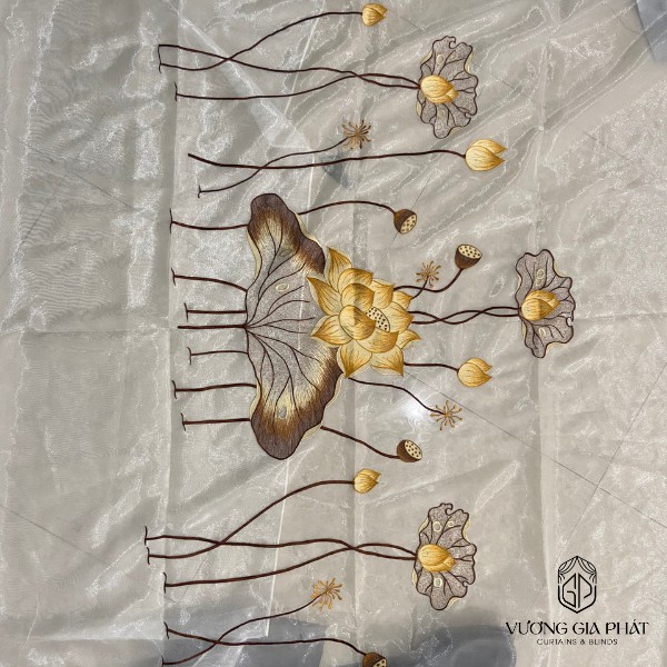 🌸 Họa tiết thêu tay – Tinh xảo đến từng đường kim: Điểm khác biệt lớn nhất của loại rèm này chính là hoa văn thêu nổi. Có thể là hình hoa lá, cành đào, chim én… Mỗi đường kim là một sự chăm chút tỉ mỉ, mang lại chiều sâu và đẳng cấp vượt trội so với rèm in họa tiết thông thường.